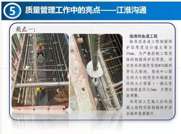 8月17日,引江濟淮集團公司召開8月份質(zhì)量安全視頻會,會上,蚌埠江河公司承建的臨淮崗魚道工程混凝土鋼筋保護層作為亮點在視頻會上交流。